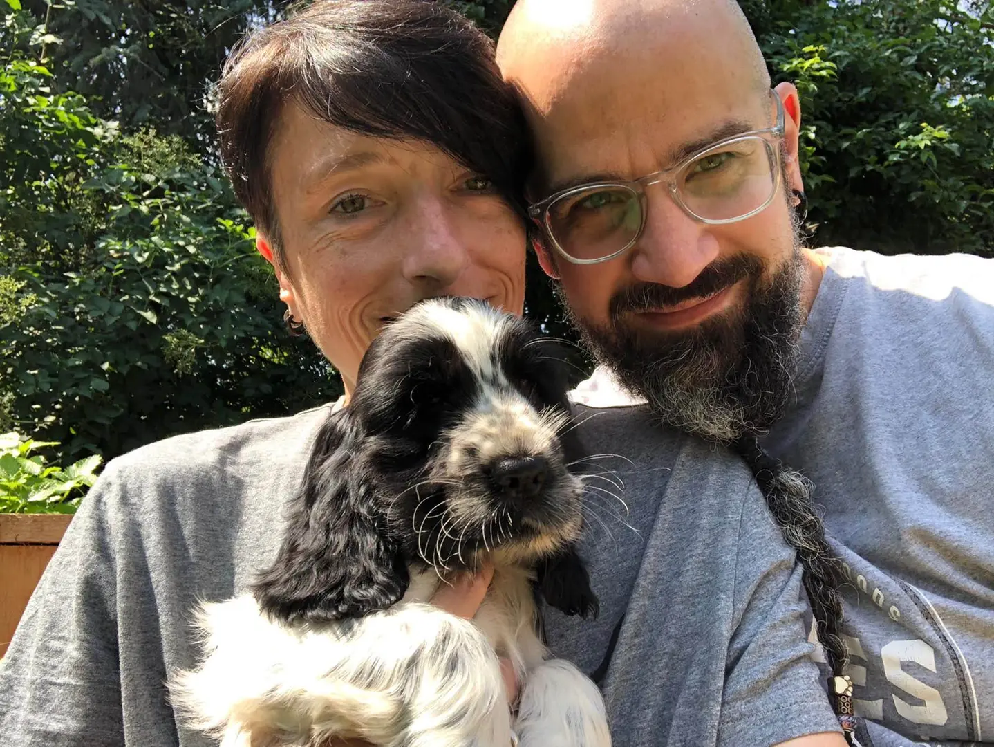 Abschied von meinen Menschen-Eltern Hier verabschiede ich mich von meinen Züchter-Eltern, natürlich mit Fotoshooting. Macht’s gut ihr beiden, wir sehen uns. Zurück zur Übersicht